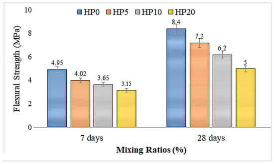 The 7-day and 28-day flexural strength results of geopolymer mortar with hemp fiber substitution.