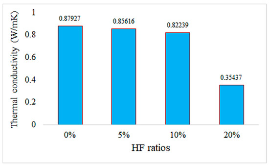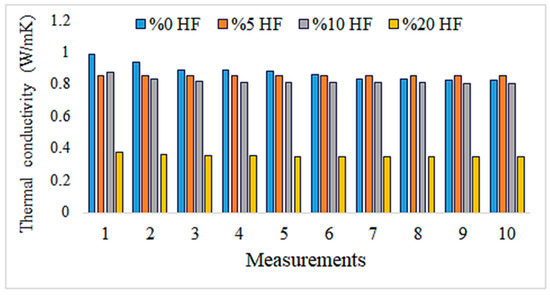 Hemp fiber reinforcement improves the thermal insulation properties of geopolymer mortar. Thermal conductivity values remain close to constant with 5% hemp fiber addition and decrease further with 10% and 20% hemp fiber addition. This suggests that hemp fibers enhance the thermal insulation performance of geopolymer mortar, contributing to energy efficiency.