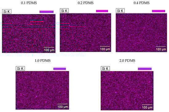 EDS mapping of the tested polymer blends containing different concentrations of PDMS (0.1, 0.2, 0.4, 1.0 and 2.0 wt.%).