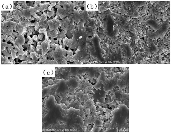 Surface microstructure of (a) LC0, (b) LC1, and (c) LC2 samples.