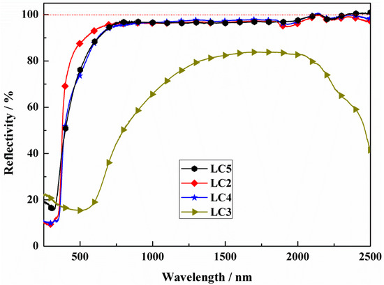Reflectivity of LC2, LC3, LC4, and LC5 samples.