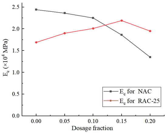 Figure 18 illustrates the variation trend in the compressive modulus (Ec) for the NAC and RAC-25 specimens with respect to the CGP content.