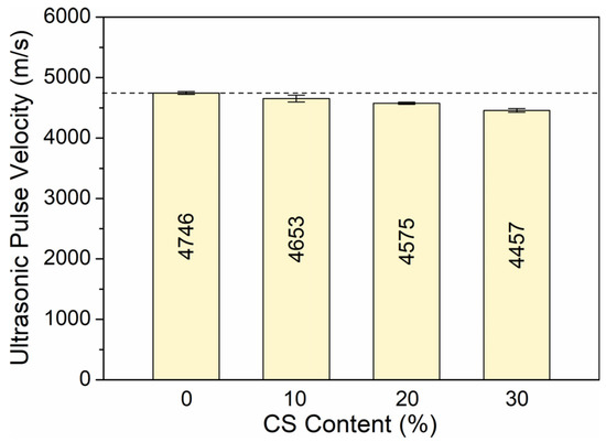 - Ultrasonic pulse velocity (UPV) values slightly decline with increased CS content but remain within acceptable ranges for good-quality concrete.