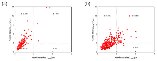M-A component distribution of experimental steel ICHAZ: (a) Steel A; (b) Steel B.