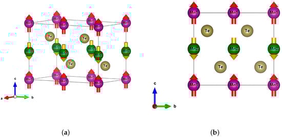 - Sandratskii, L.M.; Egorov, R.F.; Berdyshev, A.A. Energy Band Structure and Electronic Properties of NiAs Type Compounds. II. Antiferromagnetic Manganese Telluride. Phys. Status Solidi 1981, 104, 103–107. [Google Scholar] [CrossRef]