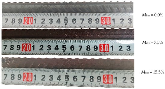 - Balestra, C.E.T.; Lima, M.G.; Silva, A.R.; Medeiros-Junior, R.A. Corrosion Degree Effect on Nominal and Effective Strengths of Naturally Corroded Reinforcement. J. Mater. Civ. Eng. 2016, 28, 04016103. [Google Scholar] [CrossRef]