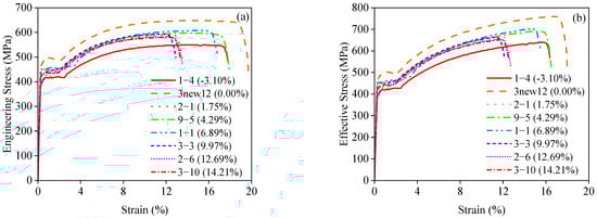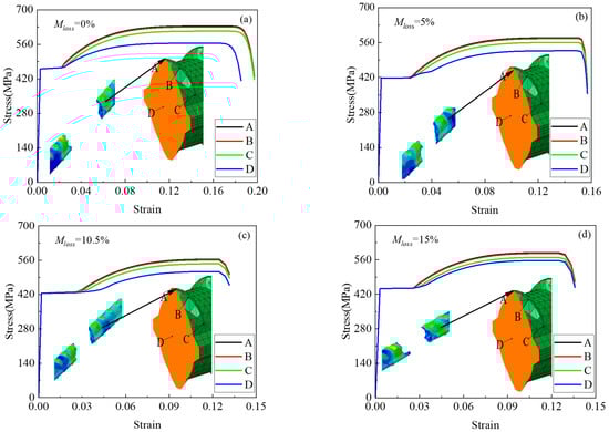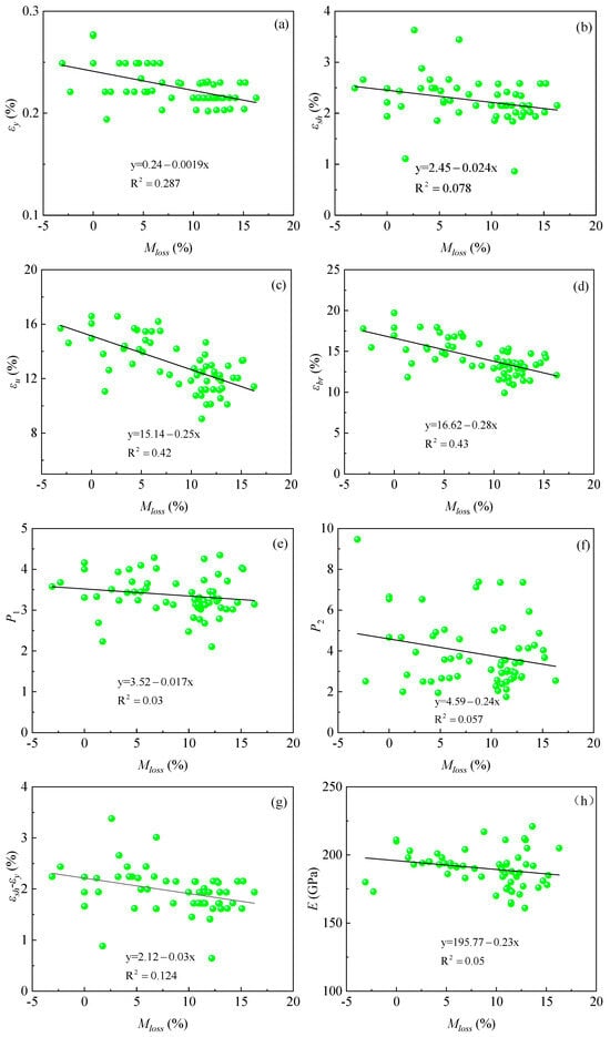 3.3. Tensile Stress–Strain Curves at Different Mass Loss Ratios