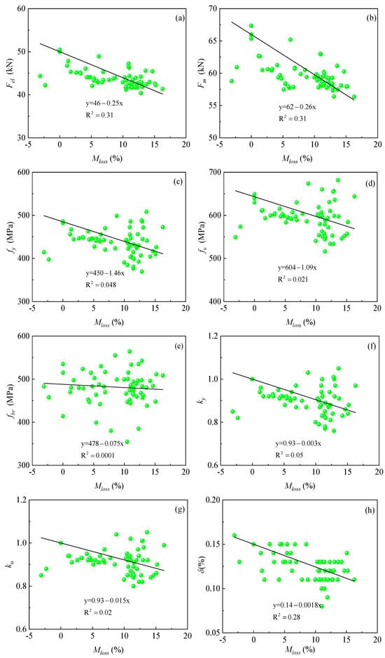 - Liu, Y.; Yuan, H.; Miao, Z.; Geng, X.; Shao, X.; Lu, Y. Tensile behaviour of pitting corroded steel bars: Laboratory investigation and probabilistic-based analysis. Constr. Build. Mater. 2023, 411, 134502. [Google Scholar] [CrossRef]