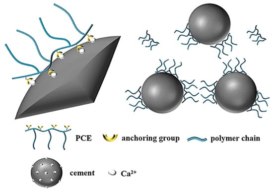 Schematic diagram of adsorption (left) and dispersion (right) of PCE [].