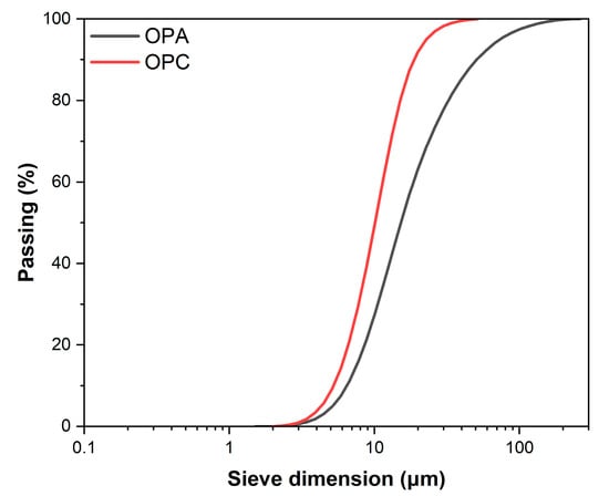 48]. The irregular shapes tend to interlock, resisting flow. This effect is exacerbated by the rough surface texture of OPA particles, which further impedes sliding and rearrangement. Additionally, the porous structure of OPA particles enables a higher water demand than OPC particles [