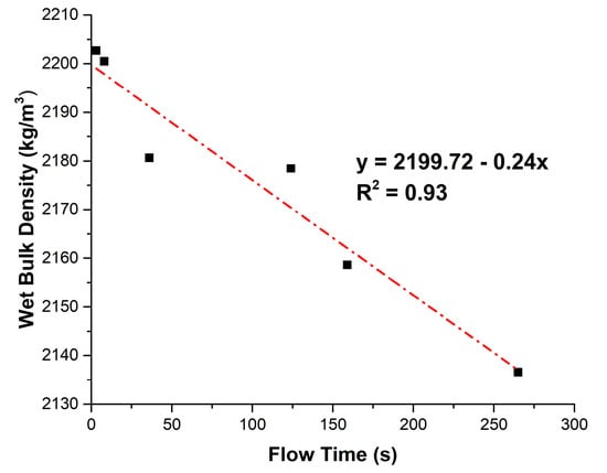 Figure 9 shows the relationship between wet bulk density and flow time.