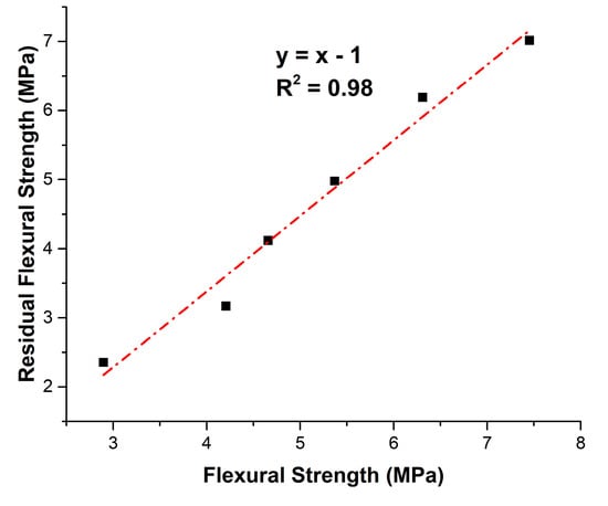 Figure 12 illustrates the linear correlation (Equation (4)) between RFS after 300 freeze–thaw cycles and FS90.