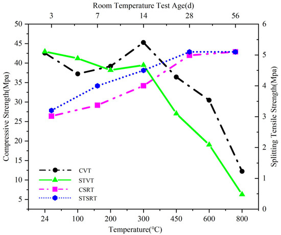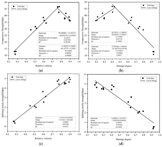 - Relationship between splitting tensile strength and relative wave velocity after different temperatures, as shown in Figure 14c.