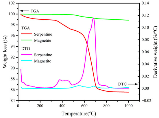 - The mass loss rate of magnetite–serpentine radiation shielding concrete increased with the increase in temperature. In the test temperature range, the mass loss rate of specimens at 600 °C−800 °C was most affected by temperature, as well as penetrating cracks. The mass loss rate of 100 mm specimen reached 12.45% at 800 °C and caused spalling phenomenon.