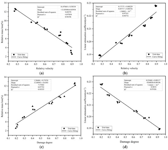 - Relationship between relative mass loss and damage degree, as shown in Figure 13c.
