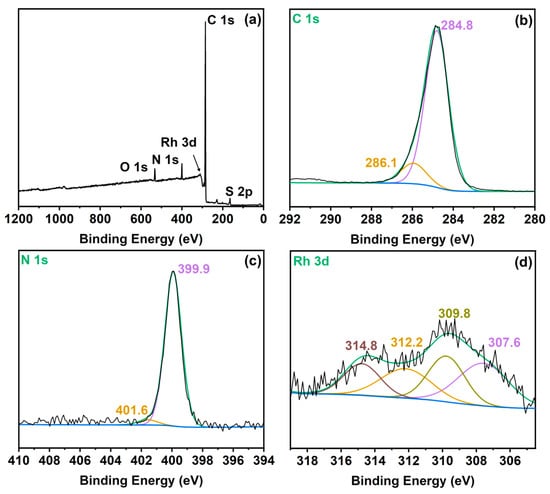XPS spectra of (a) survey; (b) C 1s; (c) N 1s; (d) Rh 3d of Rh/CTF-TPA.