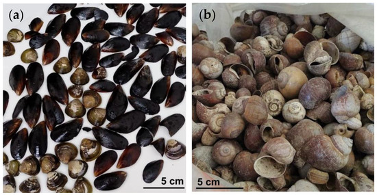 Seashells are used as a source of lime (WSL). (a) Mussel seashells; (b) snail seashells.