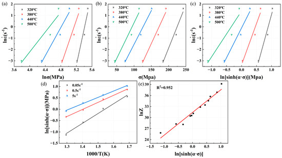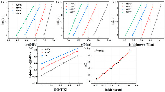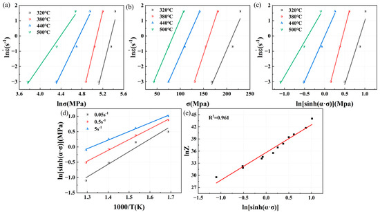 16], which is widely used to describe the relationship between the strain rate, deformation temperature, and flow stress under high-temperature deformation and to characterize the stress–strain curve as increasing and then decreasing, can be expressed for all stress conditions as follows:
