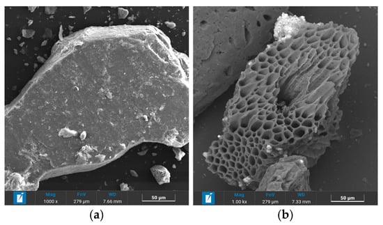 The use of biochar in cement composites has been mostly practiced by replacing cement with trace amounts of carbonized particles or by supplementing the cementitious material [8,9]. Gupta et al. [10] discussed the key points that make biochar a potential carbon sequestration additive for cement mortars, including preparation technology and the basic performances of biochar. Ahmad et al. [11] incorporated bamboo biochar into cement paste at dosages ranging from 0.05% to 0.20% by weight of cement. Compared with the reference sample, their results showed that the addition of 0.08% carbonized bamboo particles with a cement content of 0.08% increased the toughness and strength by 103% and 66%, respectively. The enhancement in toughness was ascribed to the crack-deformation mechanism induced by the biochar microparticles within the cement paste. Mishra et al. [4] suggest that the optimal amount of biochar (1%) slightly improves hydration and mechanical properties, but combination with mineral additives significantly improves the properties. The results show that biochar significantly improved the mechanical properties of concrete products. The use of biochar can sequester more carbon than alternative cementitious materials, and it has been shown that the use of biochar aggregate facilitates carbon sequestration by absorbing atmospheric carbon dioxide [12,13]. However, biochar is characterized by a loose and porous structure with high water absorption. Moreover, lowering the cement admixture significantly reduces the matrix strength. Therefore, it is particularly crucial to study the influence of the water–cement (W/C) ratio and sand–binder ratio (S/B) on the performance of biochar mortar.