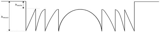 A schematic of the kinoform lens profile used in the lens design; hmin and hmax stand for the minimum and maximum depths of the kinoform shape.