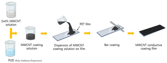 Schematic diagram of the preparation of MWCNT-coated conductive film.