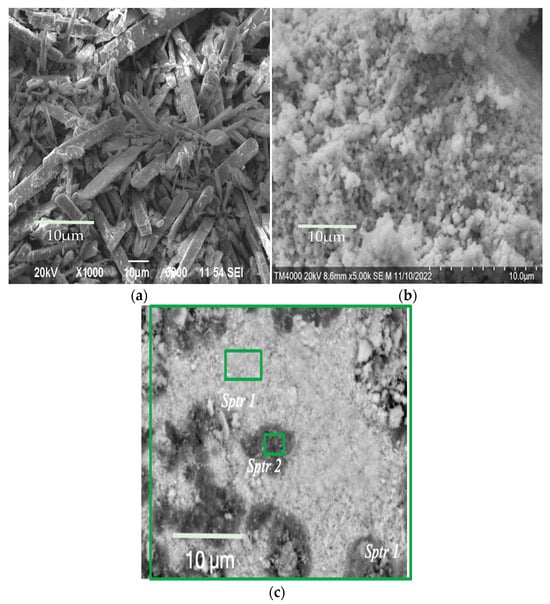 SEM images of the morphology of (a) molybdenum, (b) tungsten, and (c) co-precipitated tungsten–molybdenum compounds obtained from aqueous alcohol solutions with a W/Mo molar ratio of 0.2.