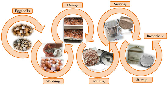 2.1. Preparation of Unmodified Eggshell-Based Biosorbent