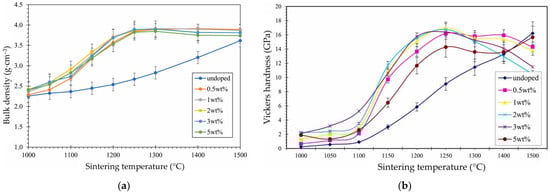 - Hadzley, A.B.; Norfauzi, T.; Umar, U.A.A.; Afuza, A.A.; Faiz, M.M.; Naim, M.F. Effect of Sintering Temperature on Density, Hardness and Tool Wear for Alumina-Zirconia Cutting Tool. J. Mech. Eng. Sci. 2019, 13, 4648–4660. [Google Scholar] [CrossRef]