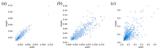 Figure 2 illustrates the ratio of the labeled size of casting defects in the dataset to the size of the original image. As shown in the figure, both porosity and inclusion defects have relatively small labeled sizes, typically occupying less than 10% of the original image size. In the context of target detection, these are classified as small targets, making them more challenging for the model to detect. By contrast, loose defects exhibit a relatively larger labeled size, which makes them easier for the model to identify.