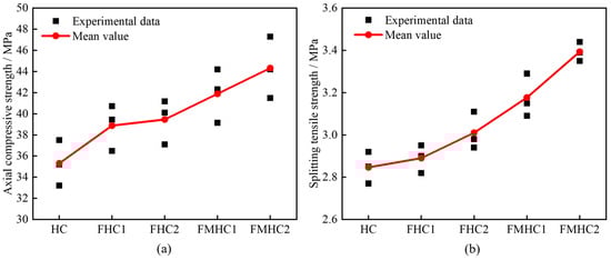 Test results of static tests. (a) Axial compressive strength; (b) splitting tensile strength.