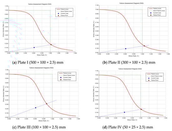 Failure assessment diagram (FAD) for the four plates in the case of center-through crack.