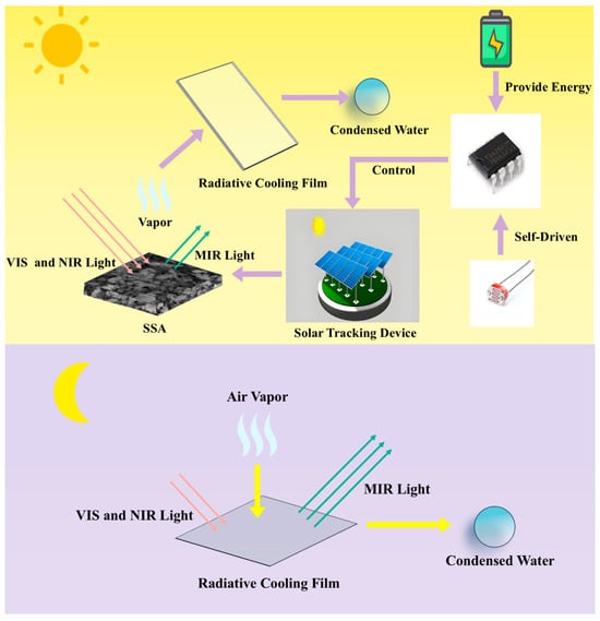 - Huang, Y.; Li, Q.; Chen, Z.; Chen, M. Sorbent-coupled radiative cooling and solar heating to improve atmospheric water harvesting. J. Colloid Interface Sci. 2024, 655, 527–534. [Google Scholar] [CrossRef]