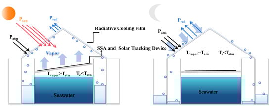 - Lv, S.; Guo, Y.; Lv, W.; Wang, Z.; Pan, Y.; Ren, J. Modeling and performance evaluation of radiative cooling-assisted interfacial evaporation for all-day freshwater harvesting. Desalination 2025, 593, 118241. [Google Scholar] [CrossRef]