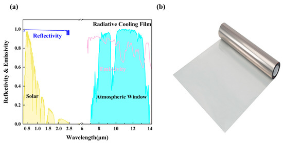 - Qi, G.; Tan, X.; Jiao, Y.; Dai, Q.; Qiao, Y.; Yang, X.; Wang, Y.; Chen, S.; Shi, C.; Yan, K.; et al. A scalable and aging-resistant film for radiative cooling. Appl. Therm. Eng. 2024, 257, 124310. [Google Scholar] [CrossRef]