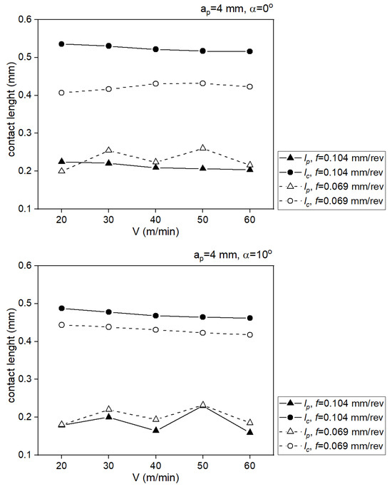 Table 7 presents the analytically determined length of the chip contact with the tool face, where is the total contact length, is the sticking length.