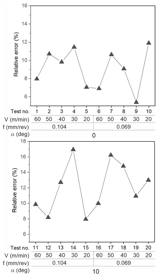 The cutting tests were performed according to the plan presented in Table 3.