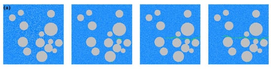 Experimental studies offer a valuable means to reveal the changes in the mechanical properties of concrete and provide deeper insight into the factors that may affect its structural stability. In order to quantitatively investigate the failure mechanisms of concrete under external loading, researchers have conducted extensive experiments to uncover the deterioration patterns of mechanical properties and the mechanisms of crack initiation, thereby contributing to improved engineering design and disaster prevention [12,13,14]. For example, Yu et al. [15] employed acoustic emission (AE) techniques to study the effect of different water–cement ratios on the strength of concrete specimens under uniaxial compression; Yang et al. [16] investigated the strength variation of wet-mix shotcrete under different loading rates; Liu et al. [17] examined the influence of varying proportions of crushable coarse aggregates on the mechanical behavior of concrete; Li et al. [18] conducted uniaxial compression tests to explore the effects of aggregate size on concrete strength, and the results showed that the peak strength increased with larger aggregate diameters. However, the tensile strength of concrete is only about 1/20 to 1/10 of its compressive strength, making it more susceptible to crack initiation and failure due to minor defects under tensile loading. Therefore, the failure mechanisms of concrete under tensile loading are equally worthy of investigation [19]: Naseri et al. [20] studied the effects of specimen size and shape on the tensile strength of concrete; Zhao et al. [21] explored changes in tensile strength and energy dissipation of concrete after high-temperature exposure; Chen et al. [22] found that the tensile strength of concrete increases with the strength of the interfacial transition zone (ITZ). Nguyen et al. [23] investigated the early-age tensile behavior of concrete and discovered that its tensile strength increases rapidly, approximately four hours after initial mixing, providing insights for concrete mix design and curing practices. These diverse experimental designs have significantly advanced the understanding of concrete’s tensile behavior; however, experimental approaches are typically limited to macro-level observations and offer only restricted insight into the microscopic evolution of damage and failure mechanisms.
