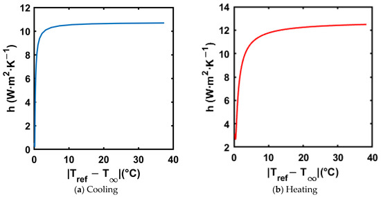 As shown in Equation (15), compute the reference heat transfer rate for each interval, . Implementing an absolute value of in Equation (15) keeps positive across heating and cooling cases.
