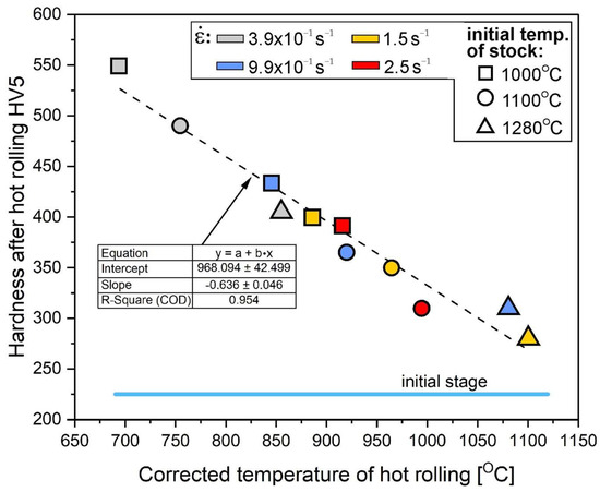 Regardless of the applied hot rolling process parameters, the deformed material showed a significant increase in hardness as compared with the initial material, resulting from the increased stored deformation energy (