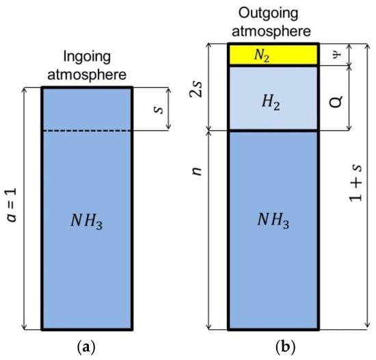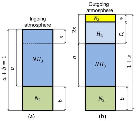 Schematic of two-component ingoing atmosphere (aNH3/bN2) (a) and outgoing atmosphere (b).