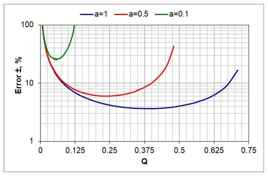 By substituting Equation (13) into expression (27) and differentiating, we obtain the relationship for calculating the error of estimating the value of the nitrogen potential as a function of the variables a and Q: