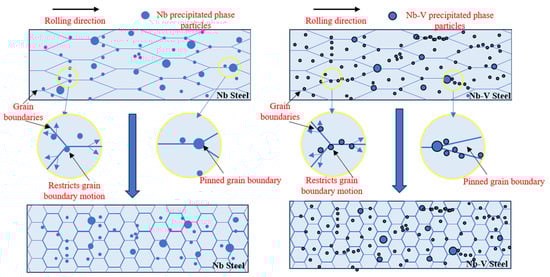 3.1. Effect of Nb-V Composite on Recrystallized Grain Size