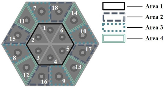 During the optimization process, an excessive number of design variables can lead to an exponential increase in computational load and complexity. To reduce the optimization difficulty, the overall structure is divided into four regions. Herein, the single triangular cavity forms Region 1, and the right-angled single trapezoidal cavity is divided into Regions 2, 3, and 4, with four of them forming a group, as shown in Figure 2.