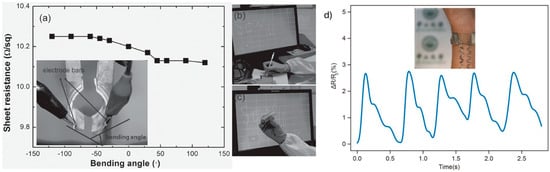 - Gupta, N.; Rao, K.; Srivastava, K.; Gupta, R.; Kumar, A.; Marconnet, A.; Fisher, T.; Kulkarni, G. Cosmetically Adaptable Transparent Strain Sensor for Sensitively Delineating Patterns in Small Movements of Vital Human Organs. ACS Appl. Mater. Interfaces 2018, 10, 44126–44133. [Google Scholar] [CrossRef]