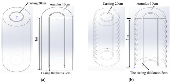 Three-dimensional oil well cementing cases: (a) Case-1 with a smooth wall surface; (b) Case-2 with a rough wall surface.