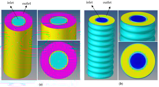 Meshing of the 3D oilwell cementing: (a) Case-1; (b) Case-2.