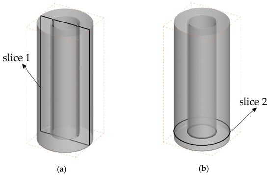 Two sections for monitoring the simulations of Case-1: (a) slice 1—longitudinal section; (b) slice 2—lateral section.