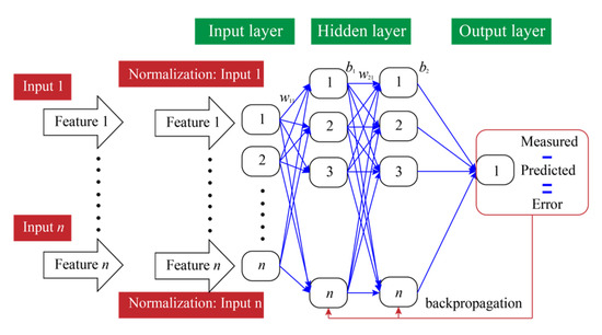 As mentioned earlier, the dataset consists of 169 samples used to generate the prediction models. According to the data allocation principle, the majority of the data are allocated to the training set to ensure the model has sufficient information to learn the relationship between input features and the output feature. The remaining data are allocated to the test set to validate the performance of the trained models. Therefore, the data allocation ratio is set at 8:2 in this paper, i.e., the training set includes 135 samples, and the remaining 34 samples are packaged into the test set. Additionally, all data need to be normalized into the range of [0, 1] or [−1, 1] to prevent dimensional differences from weakening model performance.