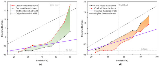 Theoretical development of crack width: (a) A-34; (b) B-45.