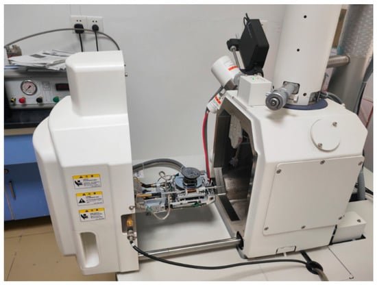The microstructural characteristics of three slurry systems—bentonite-CMC-Na2CO3, bentonite-CMC, and bentonite-HEC—were systematically investigated using a Hitachi SU3500 (Hitachi High-Technologies Corporation, Tokyo, Japan) field-emission scanning electron microscope (Figure 6). Sample preparation involved oven-drying at 55 °C for 6 h to constant weight, followed by ion-sputter gold coating to ensure adequate conductivity. High-resolution imaging was conducted in secondary electron imaging (SEI) mode at progressively increasing magnifications of 400× for macrostructural evaluation, 1500× for interfacial characterization, and 3000× for microstructural examination.